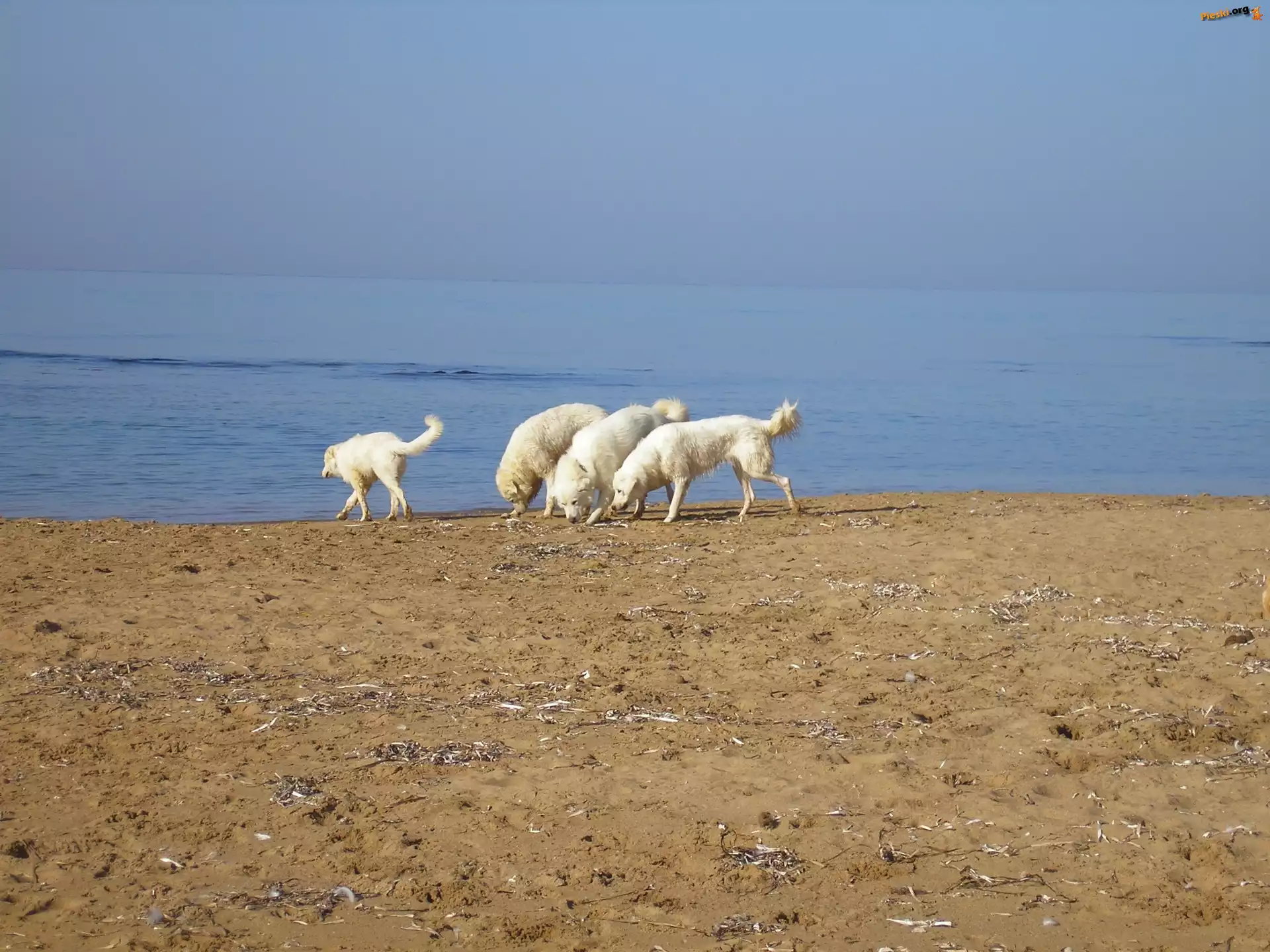 Maremmano-abruzzese, plaża Krawężnik, Biały, Piesek, Maremmano-abruzzese głowa, Maremmano-abruzzese szczeniak, Maremmano-abruzzese czerwone, Maremmano-abruzzese, donica, kwiatki