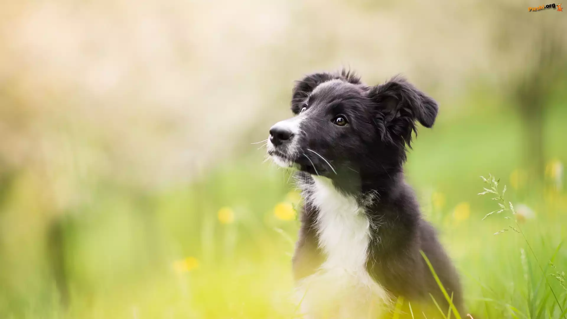 Łąka, Szczeniak, Pies, Border collie, Rozmyte tło