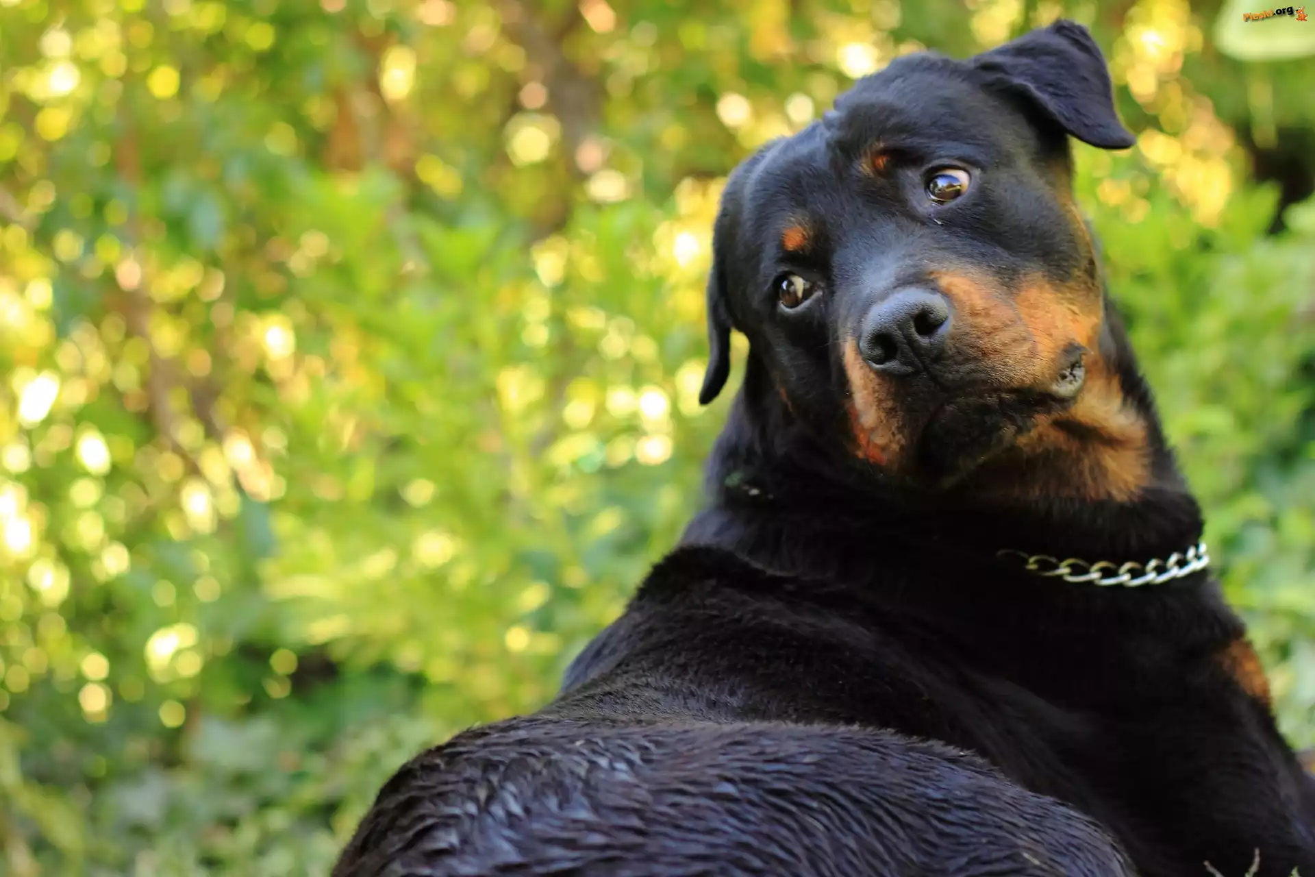 Rottweiler, Łańcuszek, Zieleń, Pieski