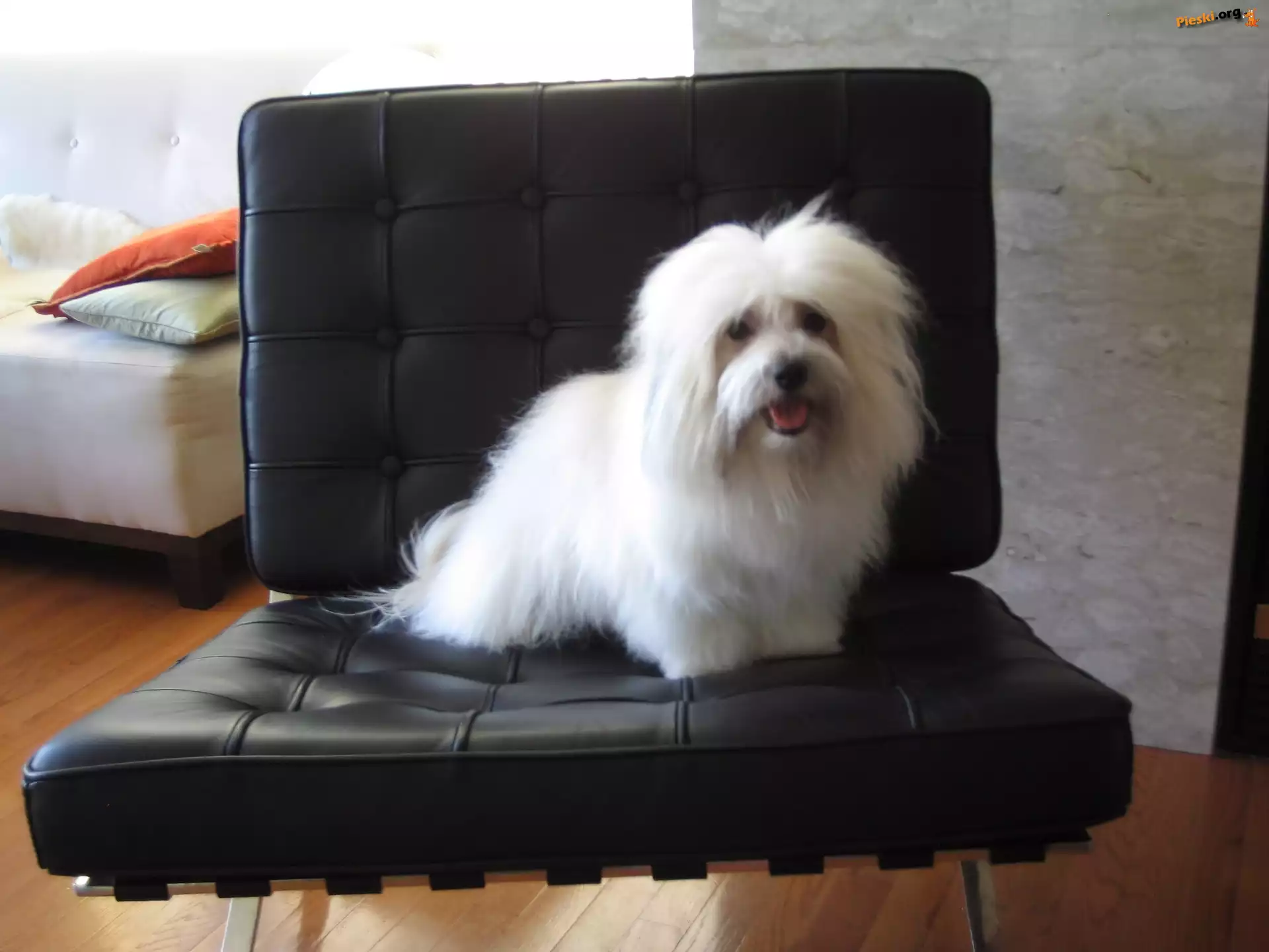 Dwa, Coton de Tulear Kokardka, Coton de Tulear, Piesek Piesek, Coton de Tulear, Łąka Biały, Coton de Tulear Szczeniak, Biały, Pies, Coton de Tulear Młoda, Kobieta, Pies Trawa, Biały, Piesek, Basen Coton de Tulear, fotel