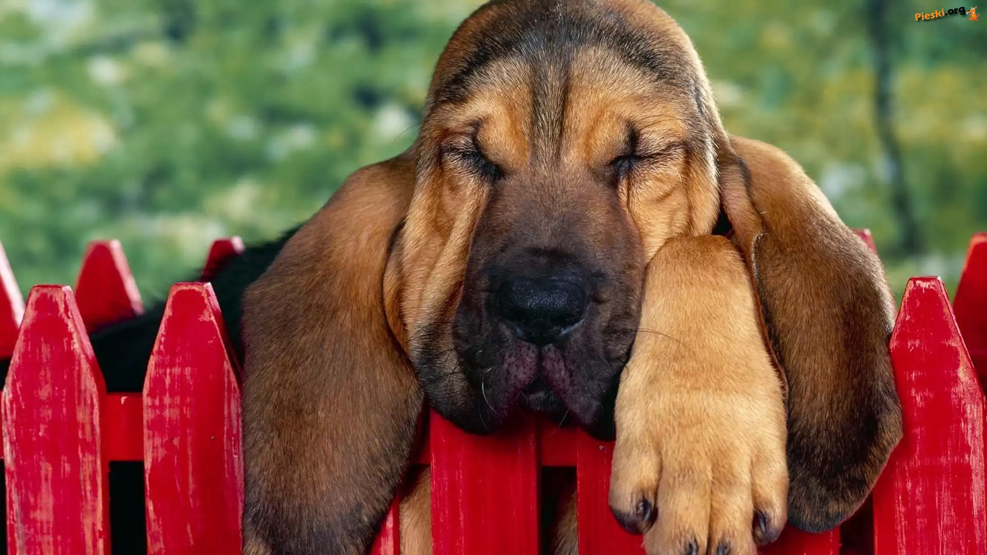 Odpoczynek, Bloodhound, Obroża, Sen Bloodhound, Stół, Nogi Bloodhound, Głowa, Język Bloodhound, Czerwone, Sztachety