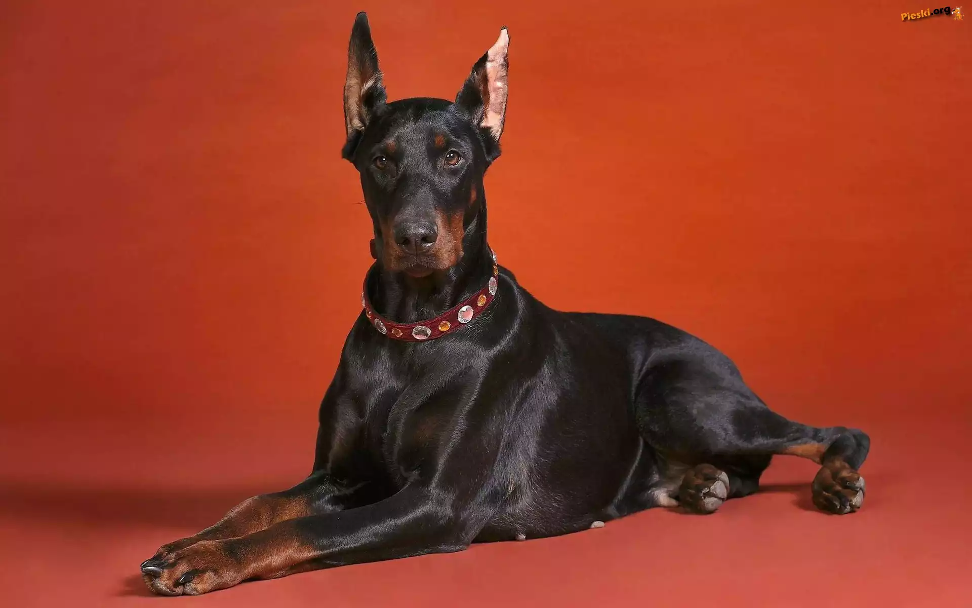 Doberman Pies, Doberman Fotelu, Doberman, W, Pysk Bronzowy, Doberman Doberman Doberman, Spojrzenie, Obroża Doberman, Łąka, Język, Czarny, Pies, Piłka Dobermany, Liście, Park, Owczarek Niemiecki, Poranny spacer, Jesień Szalik, Pies, Doberman, Kładka