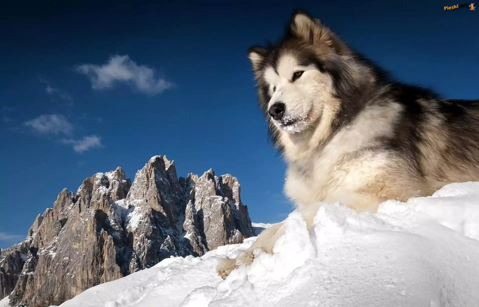 Góry, Husky, Siberian, Zima, Śnieg, Pieski