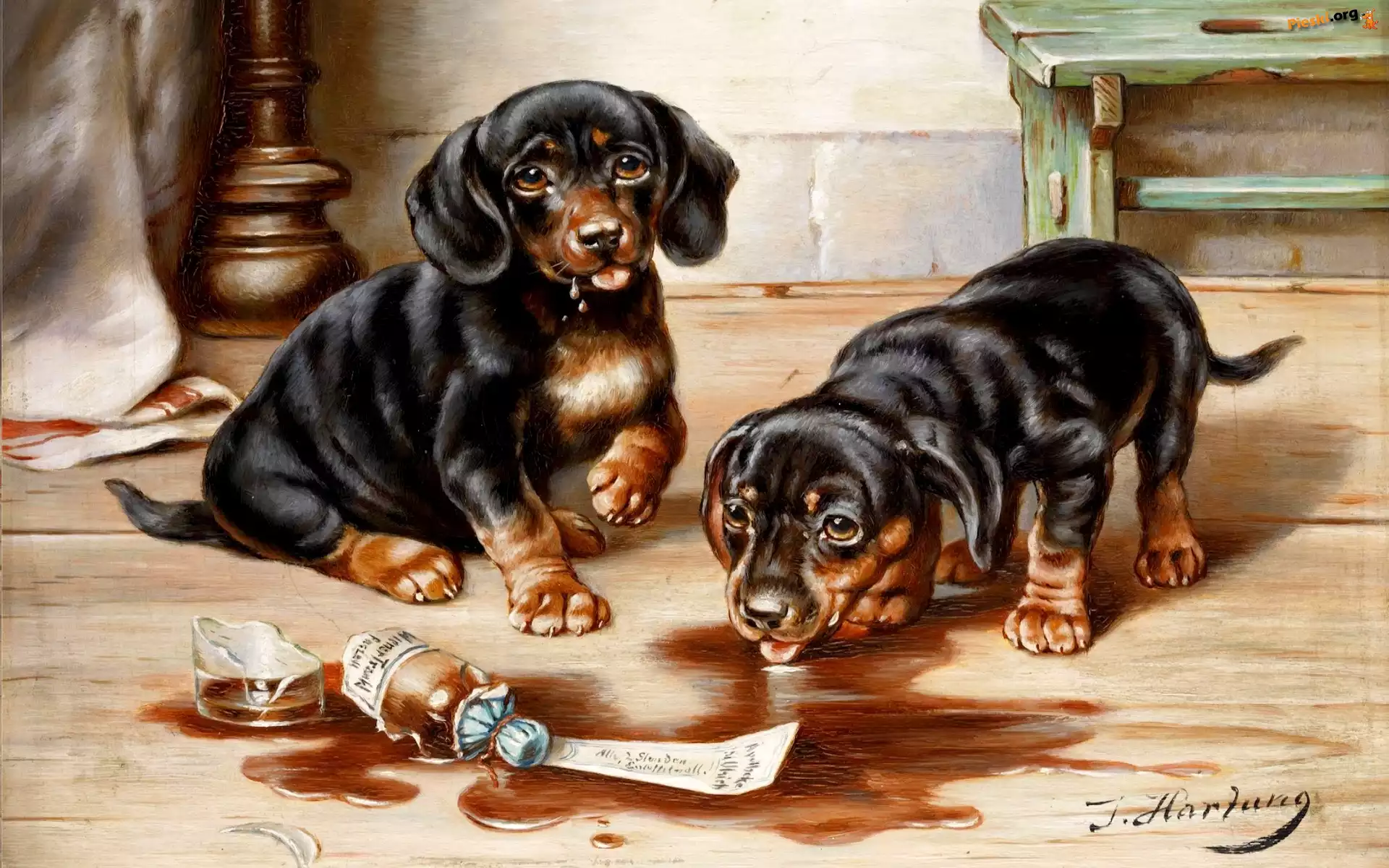 Jamniki, Dwa, Szczeniaki, Obraz, Pieski