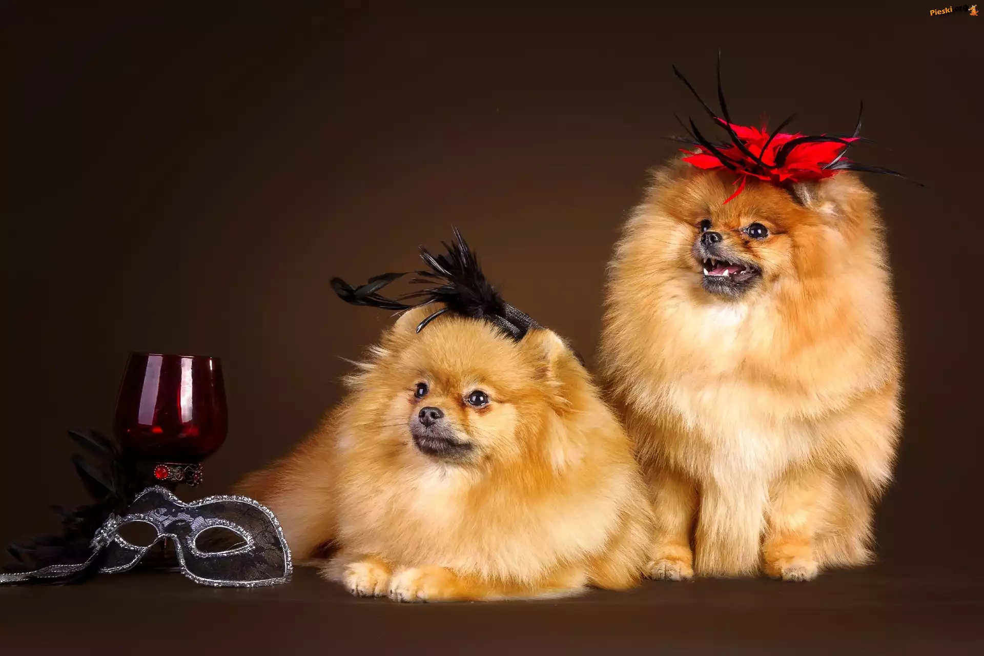 Kieliszek, Dwa, Szpice, Maska, Pieski