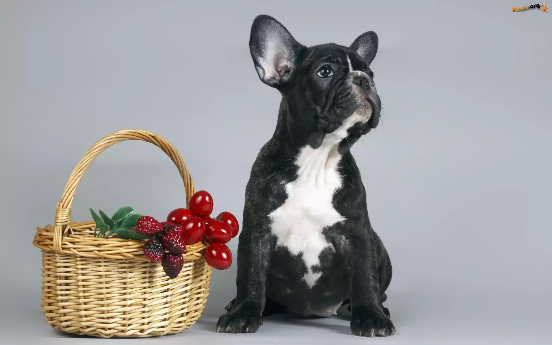 Koszyk, Buldog, Francuski, Owoce, Pieski