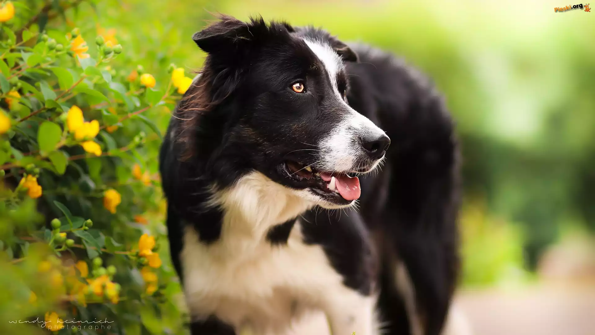 Krzew, Pioes, Border collie, Kwiaty, Pieski
