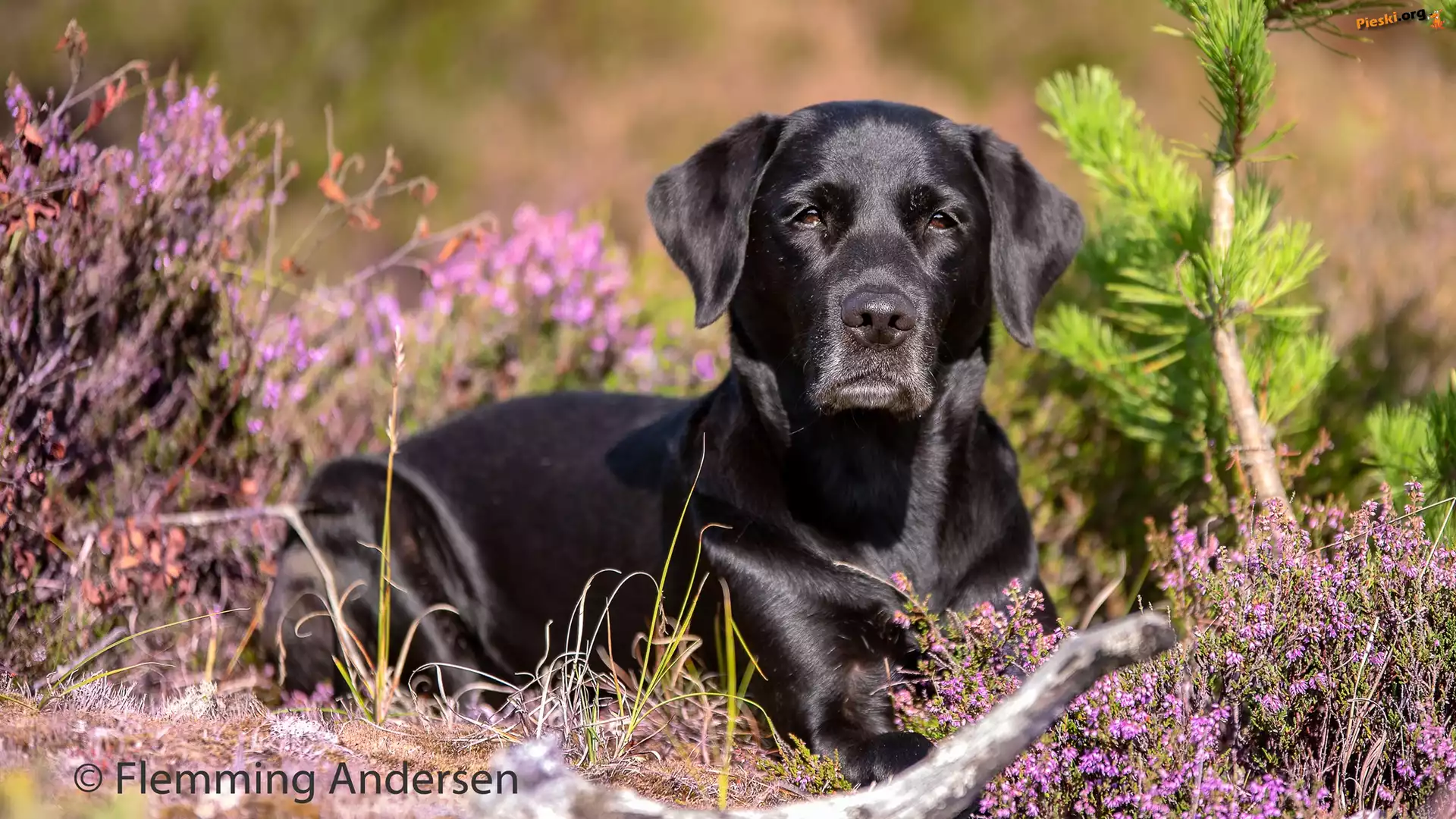 Labrador retriever, Pies, Czarny, Wrzosy, Pieski