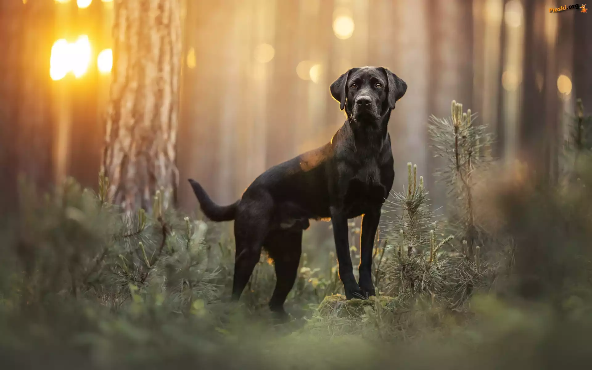 Las, Labrador retriever, Czarny, Pies, Pieski