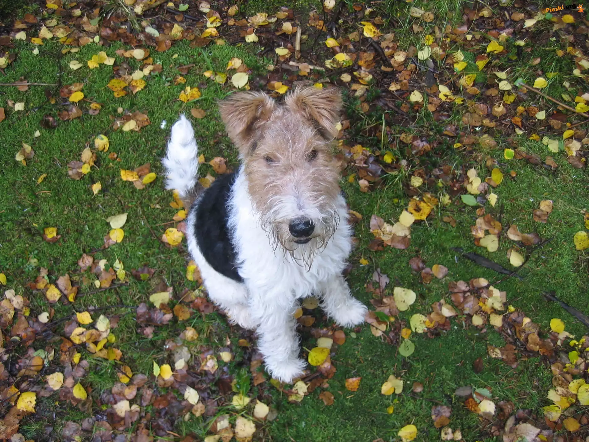 umaszczenie, pszeniczne, Lakeland Terrier Lakeland Terrier, Liście, Trawa Terier Lakeland