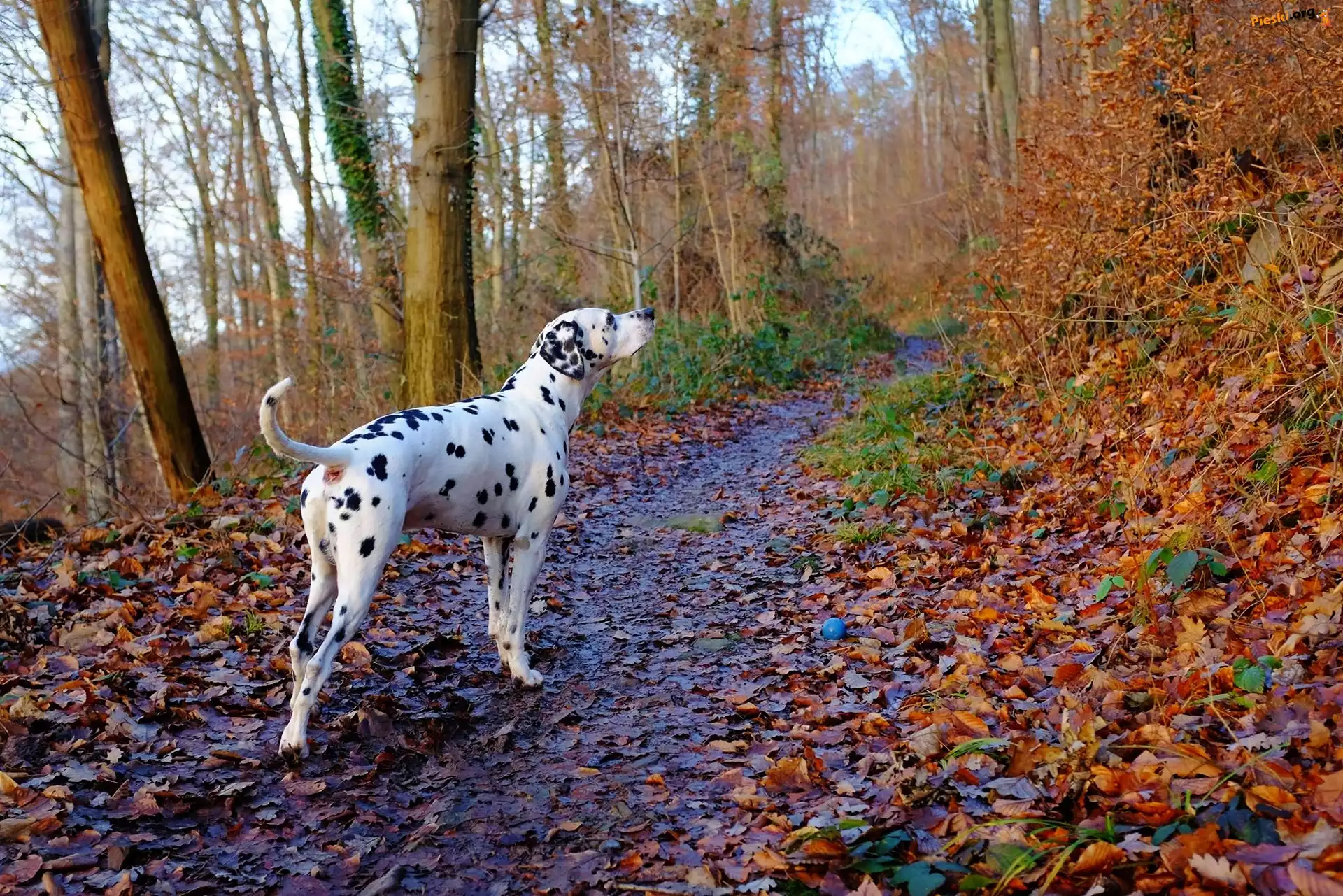 Liście, Dalmatynczyk, Ścieżka, Pnie, Pieski