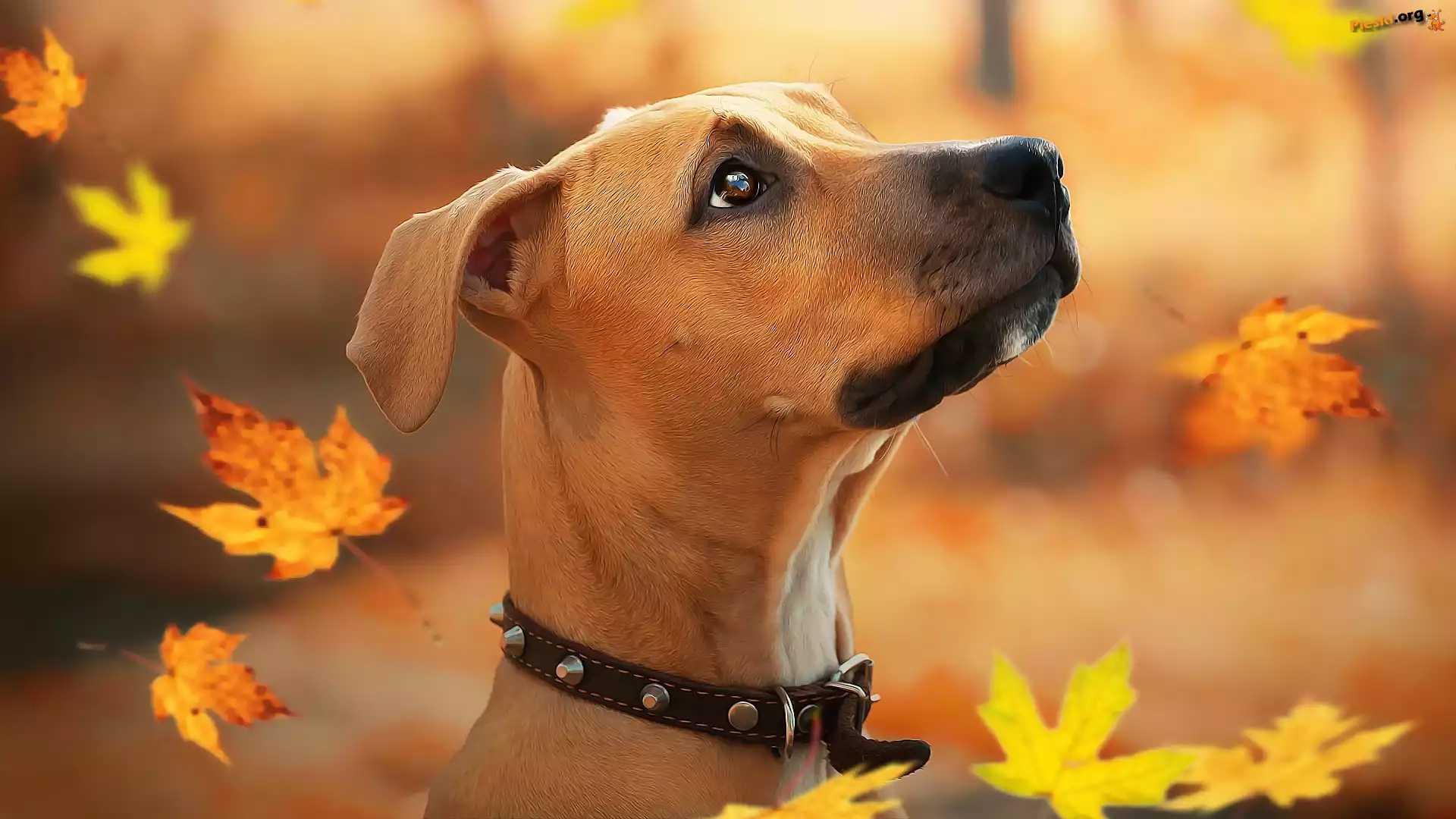 Pies, Liście, Spadające, Szczeniak, Rhodesian ridgeback, Grafika, Pieski