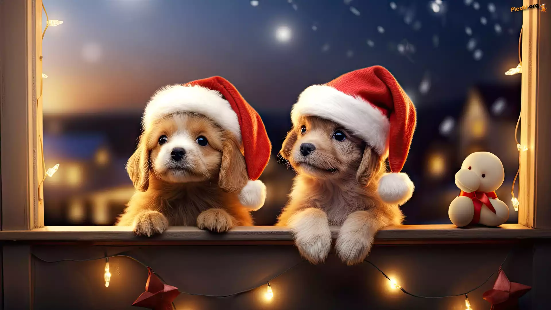 Szczeniaki, Maskotka, Dwa, Czapki, Psy, Pieski