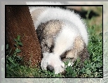 Śpiący, Piesek, Trawa zielona, Mały, Owczarek środkowoazjatycki, trawa Chłopiec, Pies, Przyjaciel Pnie, Chłopiec, Pies, Owczarek środkowoazjatycki Szczeniak Młody, Piesek, Owczarek środkowoazjatycki