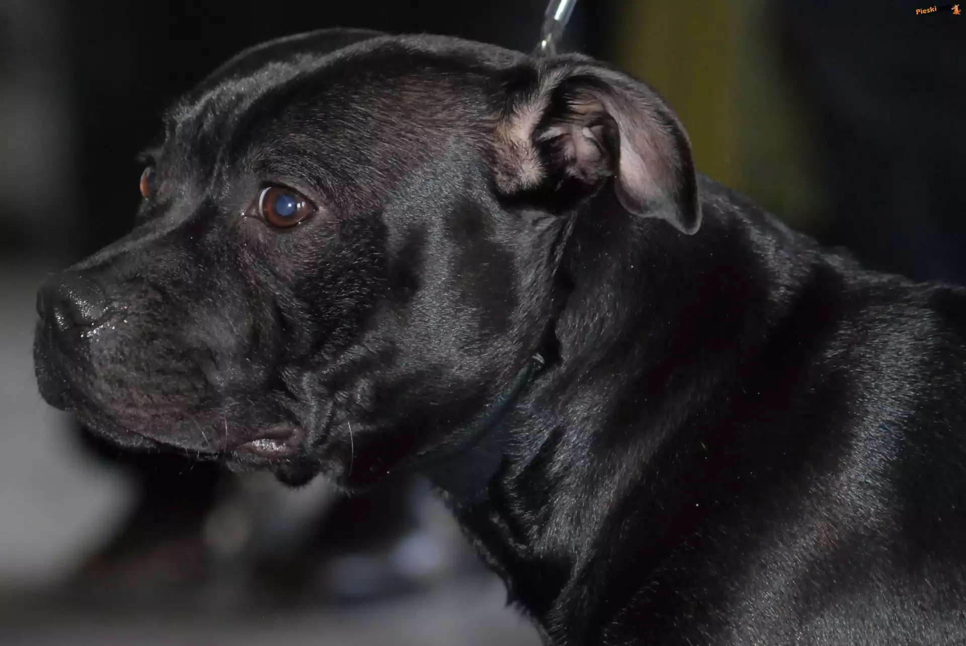 Trawa, Staffordshire Bull terrier, Pies Mordka, Pies, Staffordshire Bull Terrier, Wrzosy Staffordshire Bull Terrier, obroża Morda, Staffordshire Terrier morda, Staffordshire Bull Terrier Szczeniak, Pies, Słodki, Staffordshire Bull Terrier Pies, Staffordshire bull terrier, Maki Niebieski, Amerykański, Amstaff, Stafford, Terrier Szczeniak, Staffordshire Bull Terrier