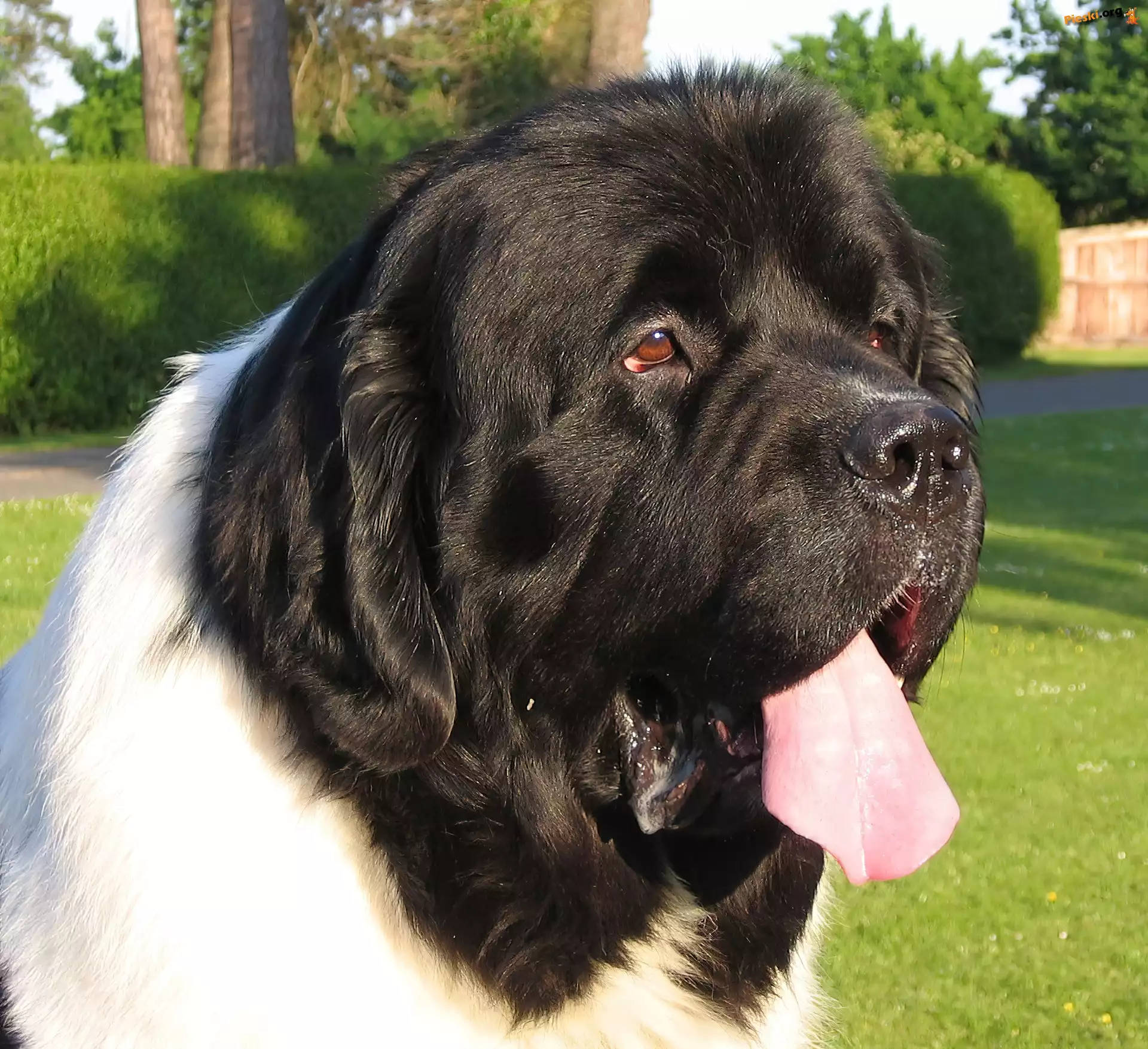 biało-czarny, Landseer słodkie, szczeniaki, Landseery morda, Landseera pysk, Landseera mordka, Landseera Morda, Landseera Piesek, Łąka kratka, chustki, Landseer Kot, Pies, Słodkie biegnący, Landseer trawa, zielona, Landseer trzy, Landseery