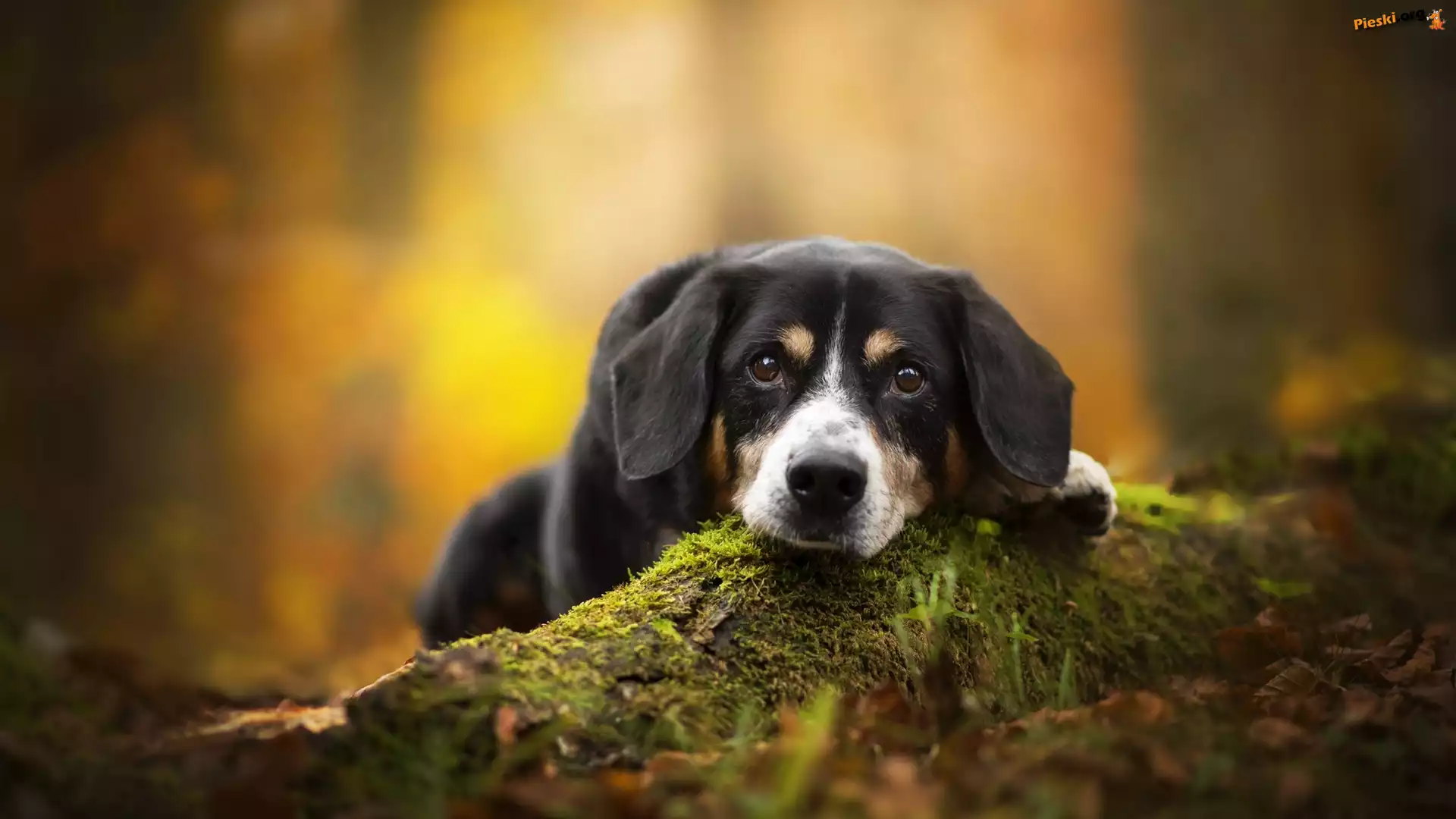 Ściółka, Entlebucher, Pies, Mordka, Mech, Pieski
