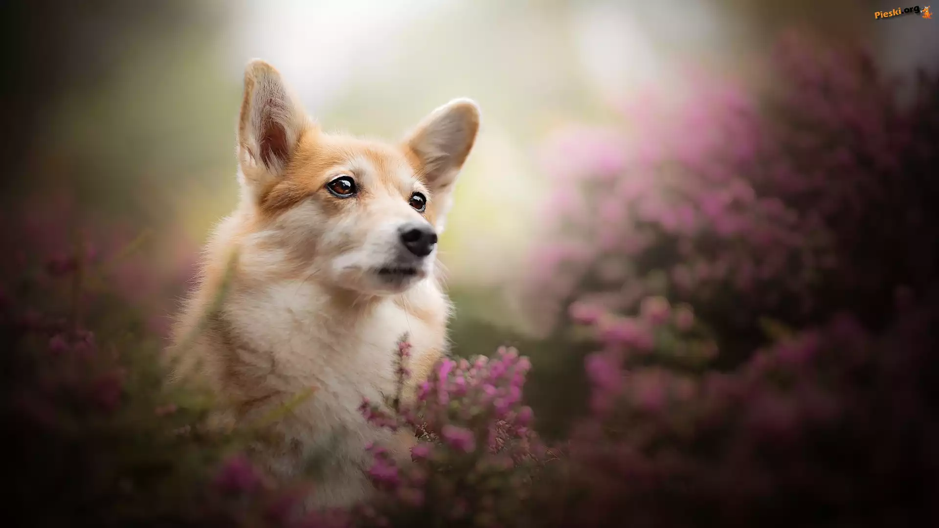 Mordka, Pies, Welsh corgi pembroke, Wrzosy, Pieski