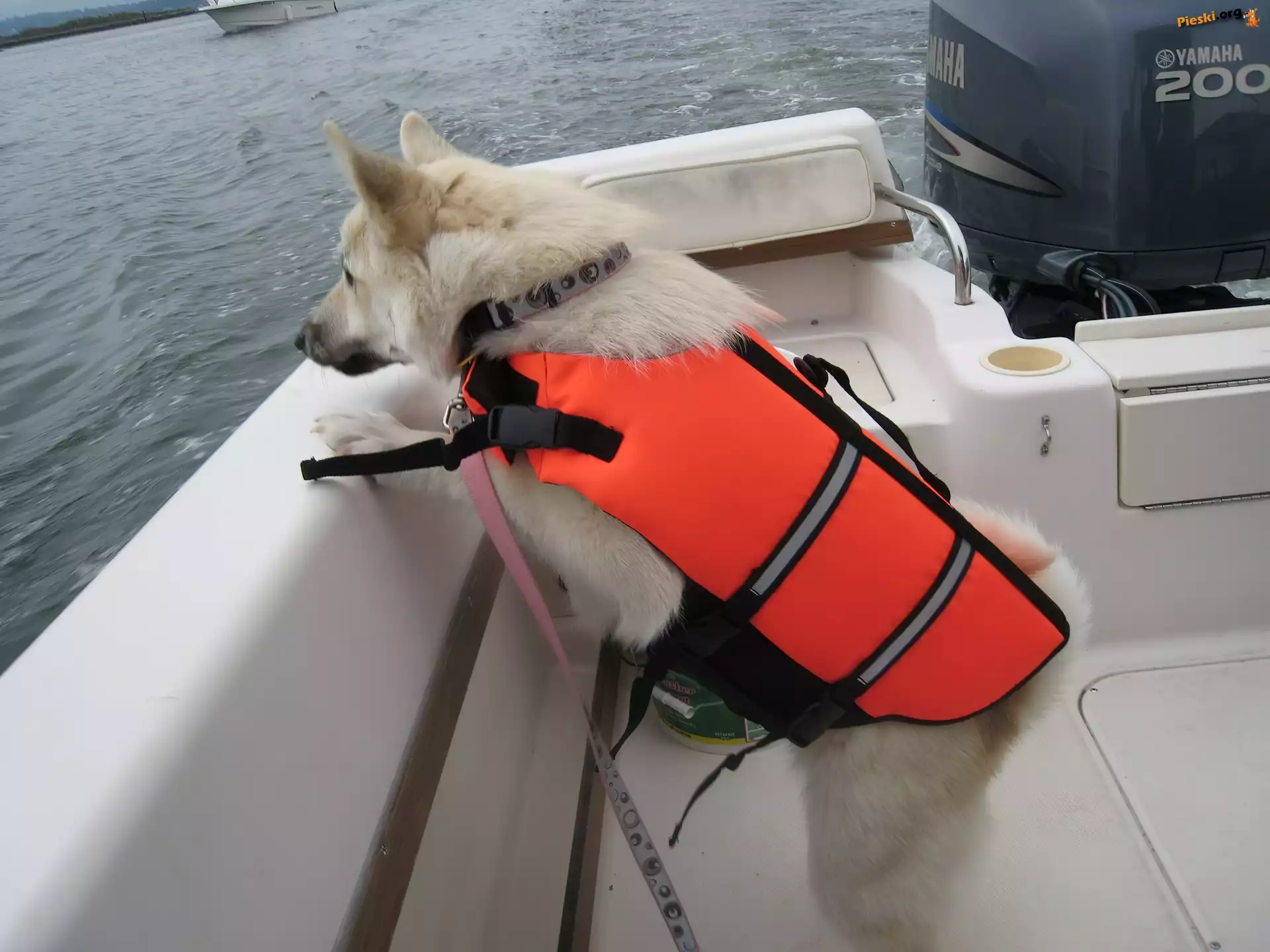 Norsk Buhund, kapok Ziewający, Norsk Buhund Norsk Buhund, pomarańczowy, kapok Przyczajony, Norsk Buhund Norsk Buhund, fale, motorówka Norsk Buhund, zima
