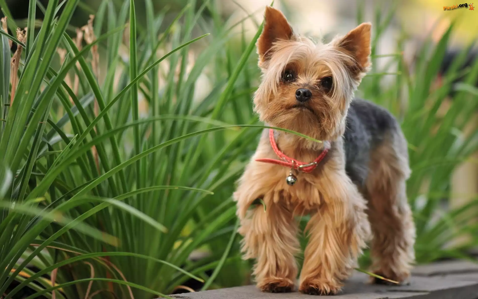 Dwa, Pieski, Yorkshire Terrier Kanapa, Yorki, Dwa Owczarek, York, Dwa, Niemiecki, Psy Pies, Yorkshire terrier, Kokardka Śmieszne, Pies, Ubranie, Trawa Siwy, Mały, York Mały, York, Maskotka Yorkshire terrier, Łąka, Koniczyna York, Futerko Mały, York Terier Smycz, Yorkshire Terrier, Piesek Dziecko, Pies, Posiłek Dwa, Szczeniaczki, Kufer