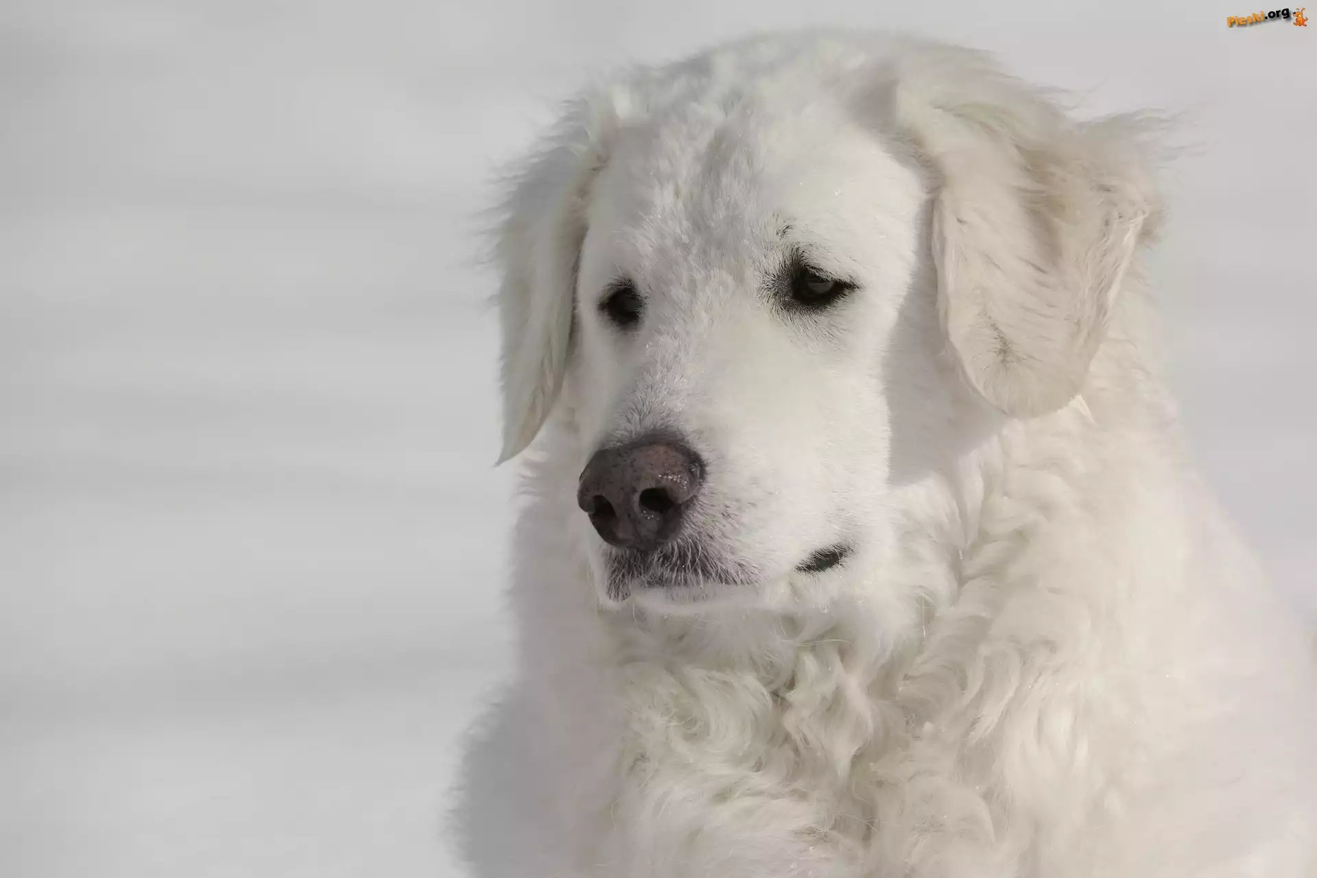 Biały, mały, piesek czerwona, Owczarek podhalański, zęby, obroża Mordka, Polskiego owczarka podhalańskiego Biały, Polski owczarek podhalański, język Pies, Owczarek Podhalański Trawa, Dwa, Pieski, Niebo Owczarek podhalański, zielona, trawa skórzana, Głowa, Owczarka podhalańskiego, obroża