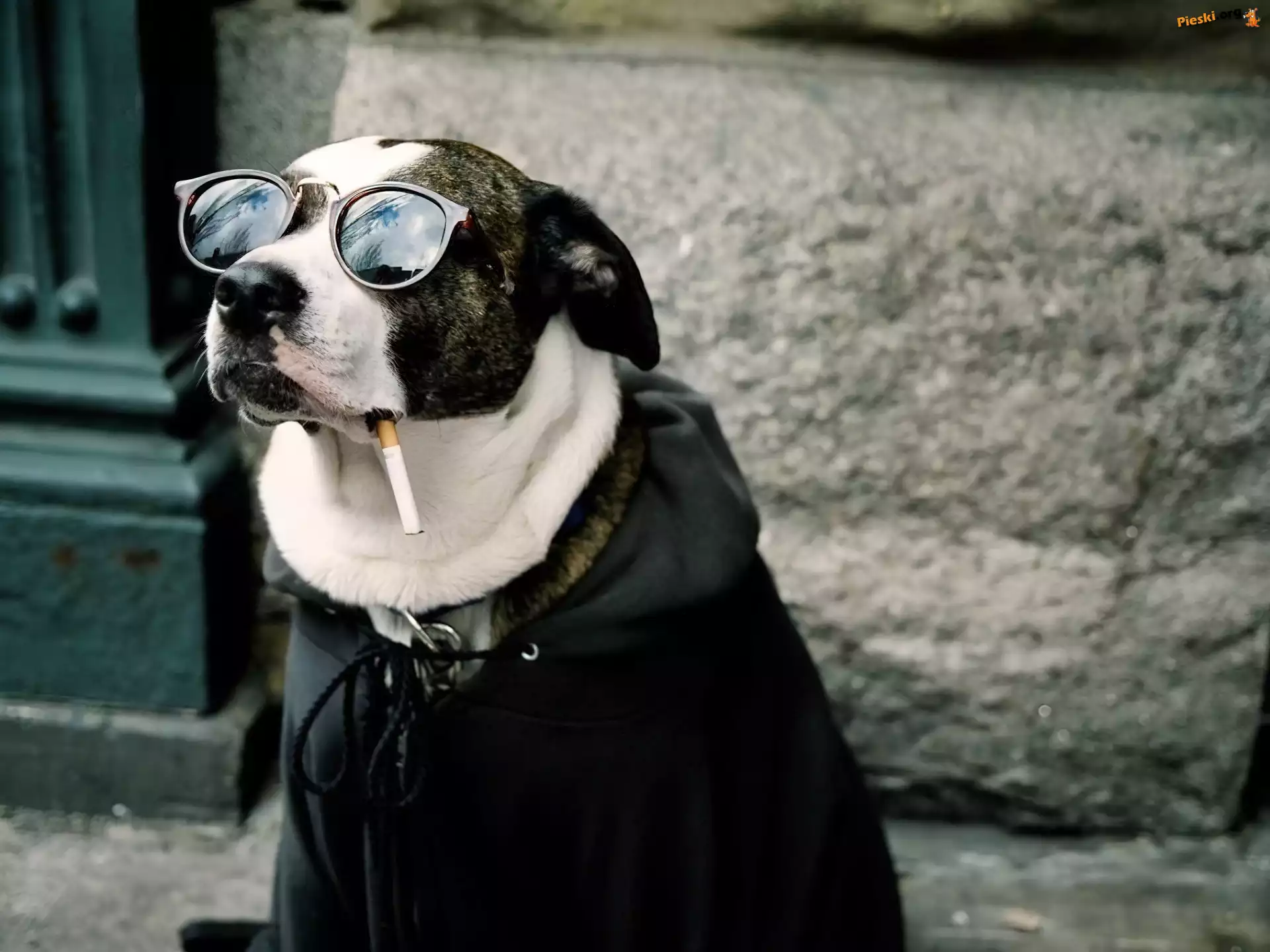 Peleryna, Papieros, Pies, Okulary, Pieski