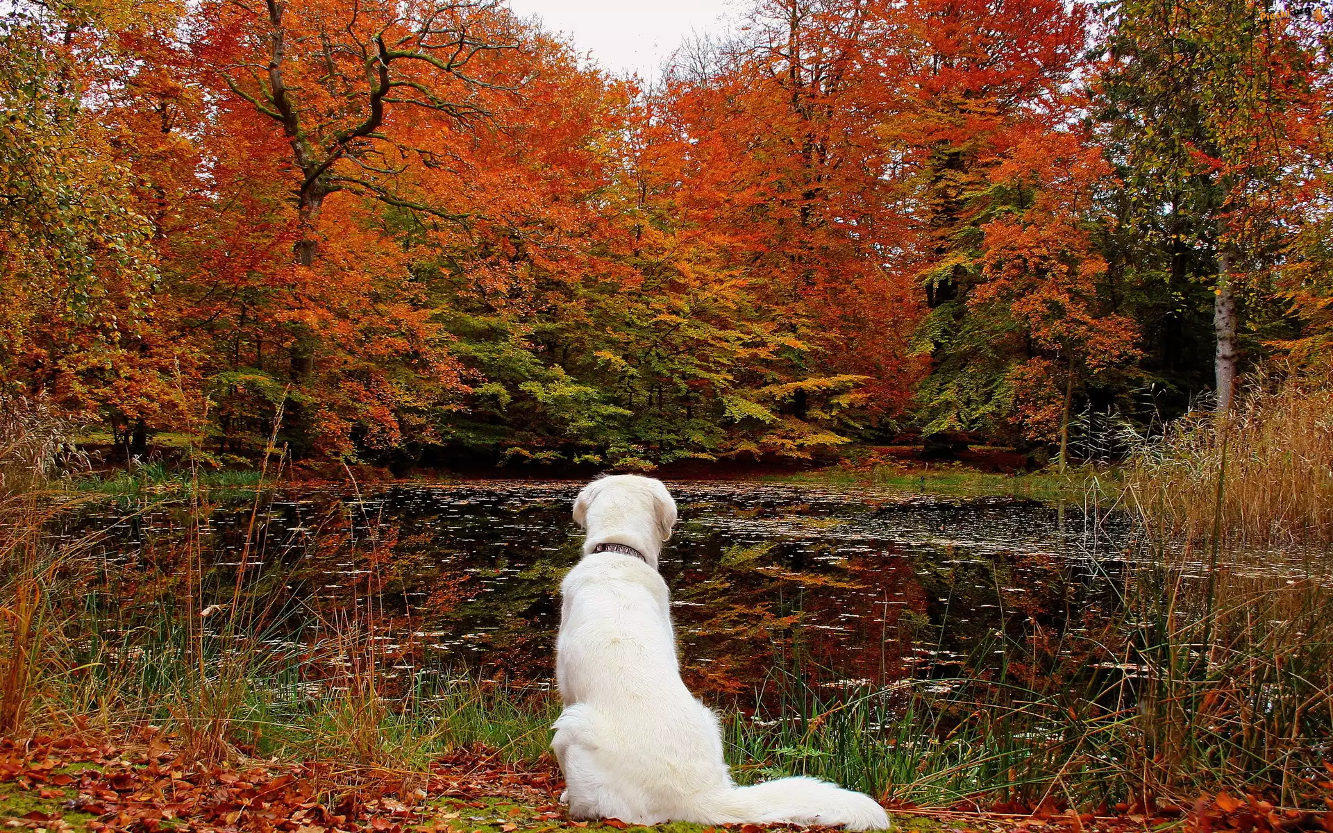 Park, Liście, Wodny, Pies, Zbiornik, Jesień, Pieski