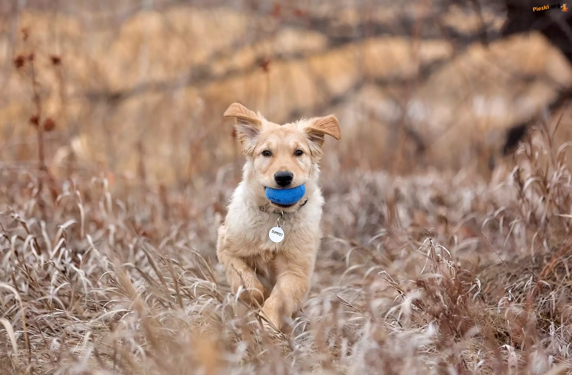 Piłka, Pies, Obroża, Trawa, Pieski