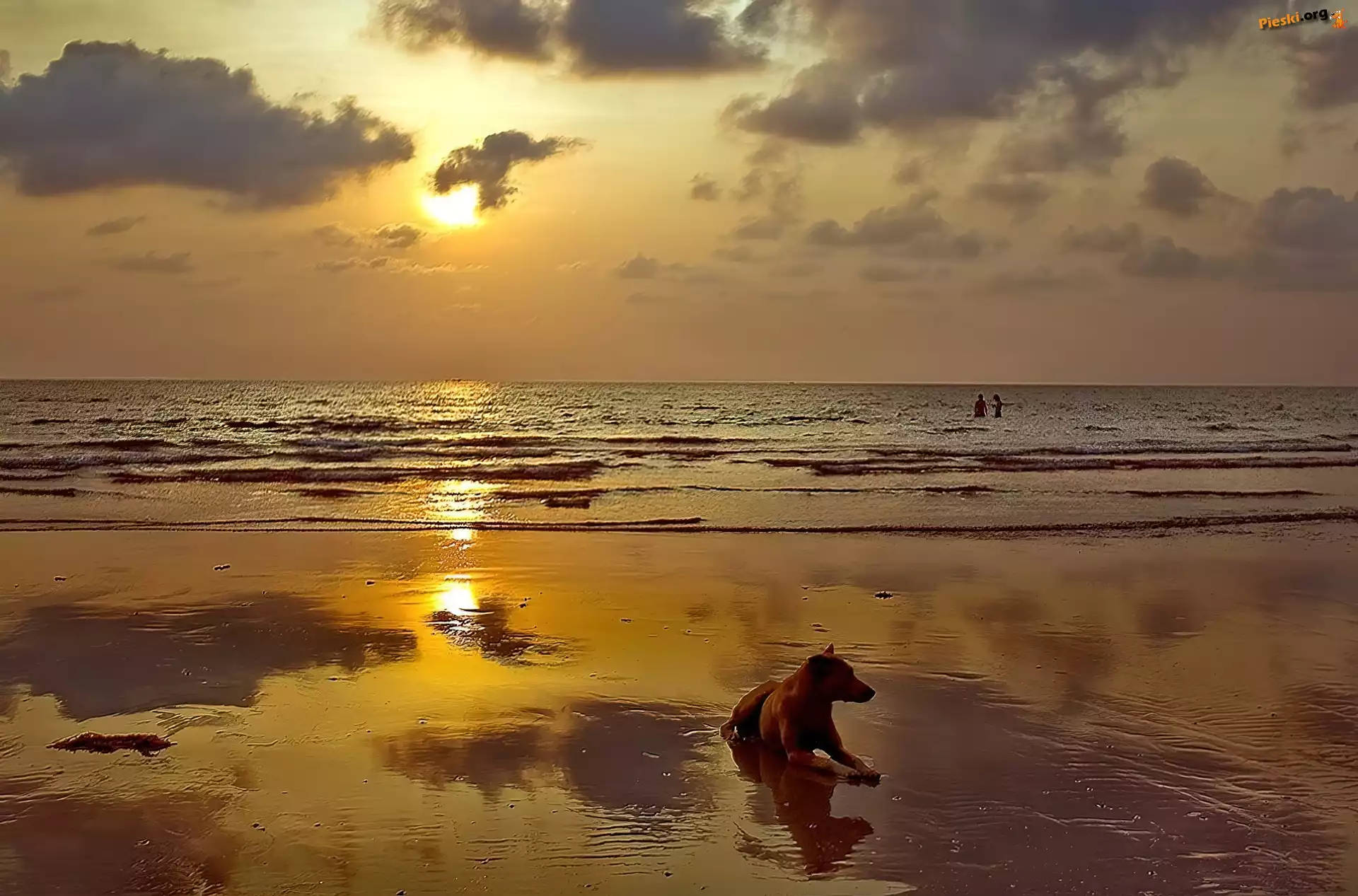 Plaża, Morze, Pies, Fale, Chmury, Pieski
