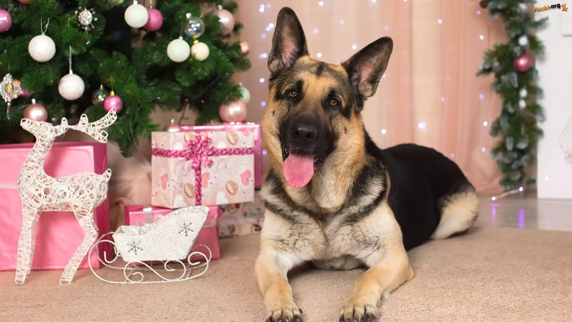 Prezenty, Pies, Owczarek niemiecki, Choinka