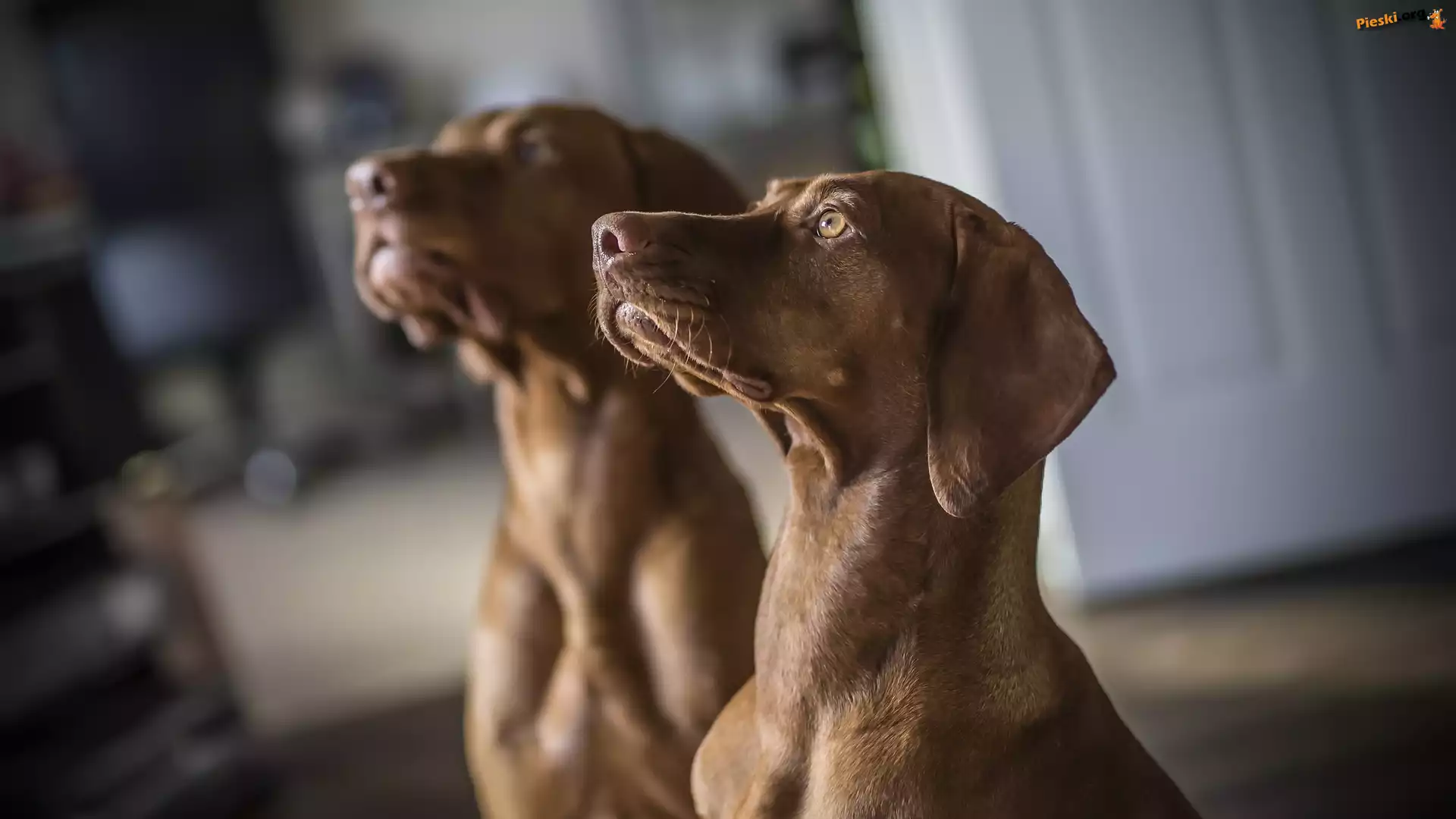 Spojrzenie, Psy, Dwa, Wyżeł węgierski krótkowłosy, Rozmyte Tło, Pieski