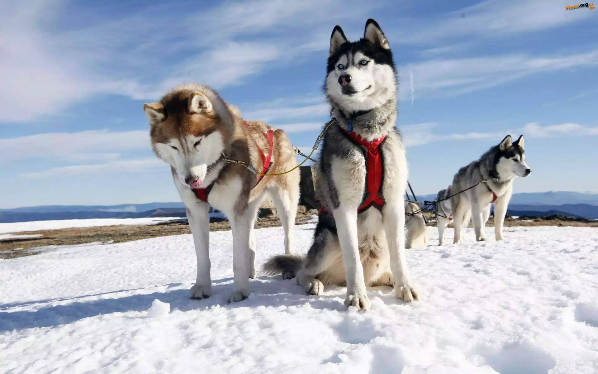 Psy, Góry, Sanie, Husky, Zaprzeg, Zima