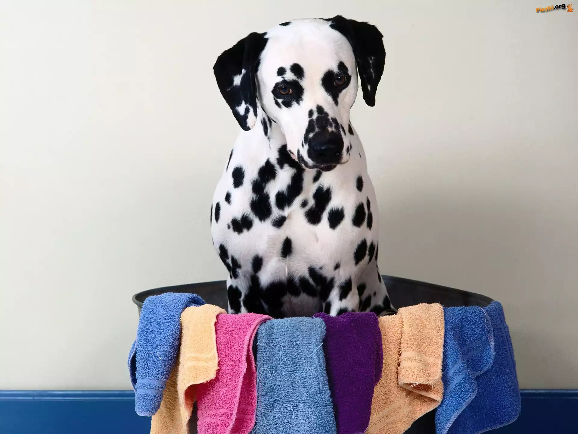 Ręczniki, Pies, Dalmatyńczyk, Miska, Pieski