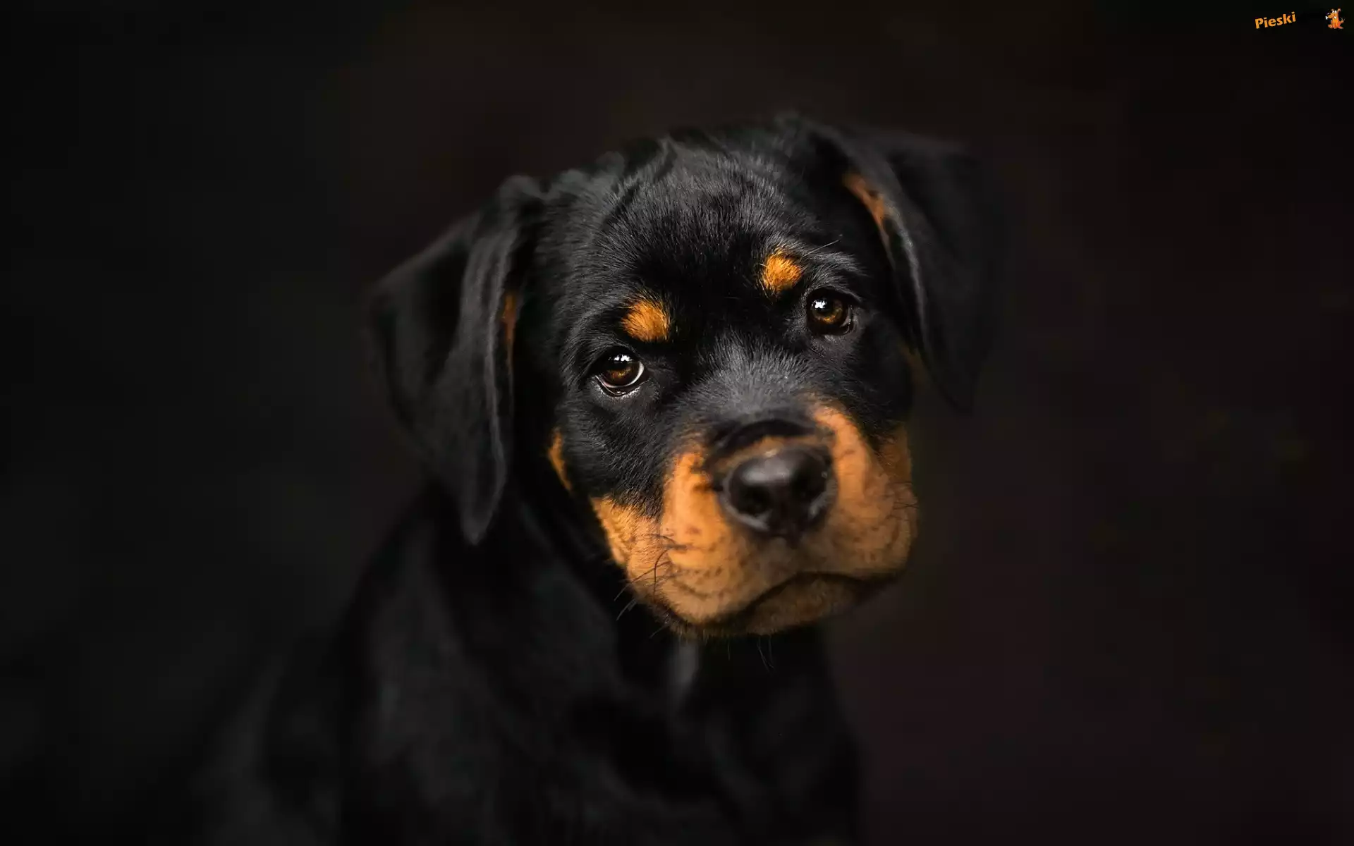 Rottweiler, Szczeniak, Czarne tło, Pieski