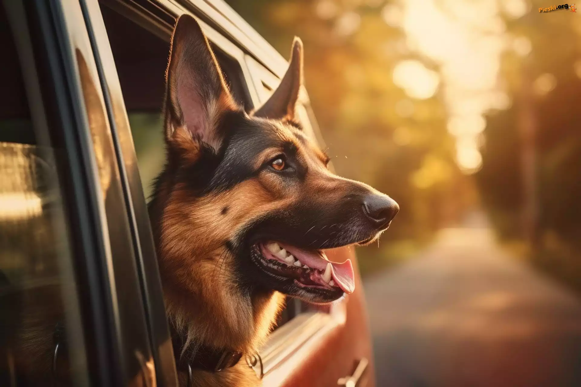 Głowa, Okno, Pies, Samochód, Owczarek niemiecki, Pieski