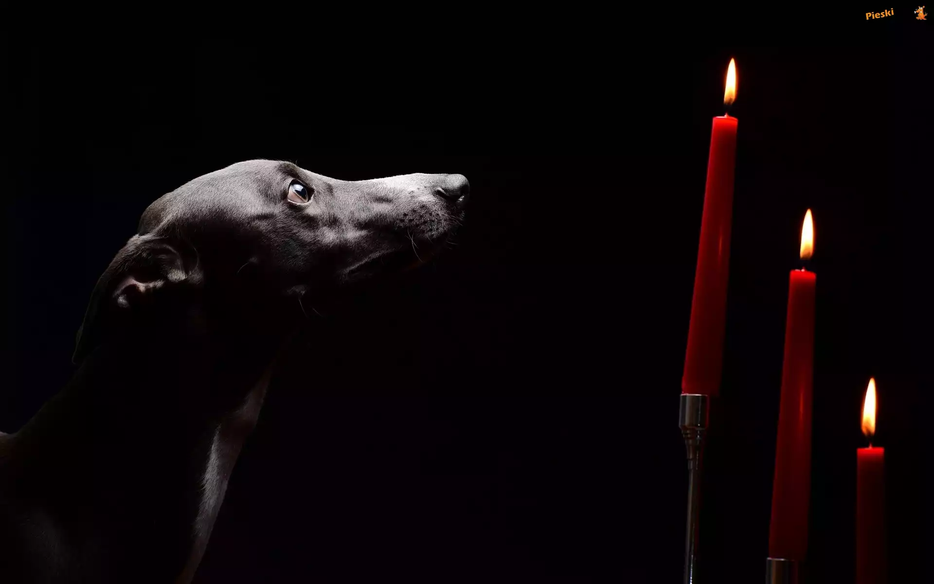 Smutny, Czarne, Świece, Pies, Trzy, Tło, Pieski