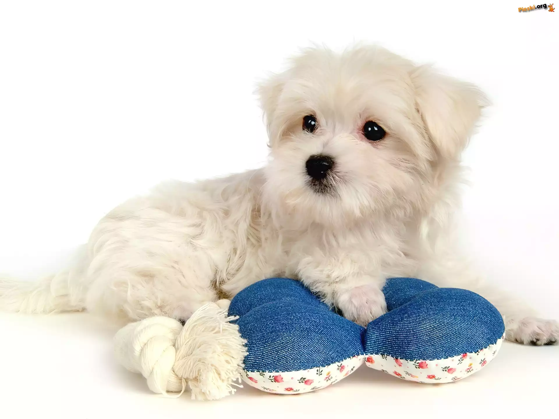 Maltańczyk, Szczeniaczek, Biały, Zabawka, Maltese, Pieski