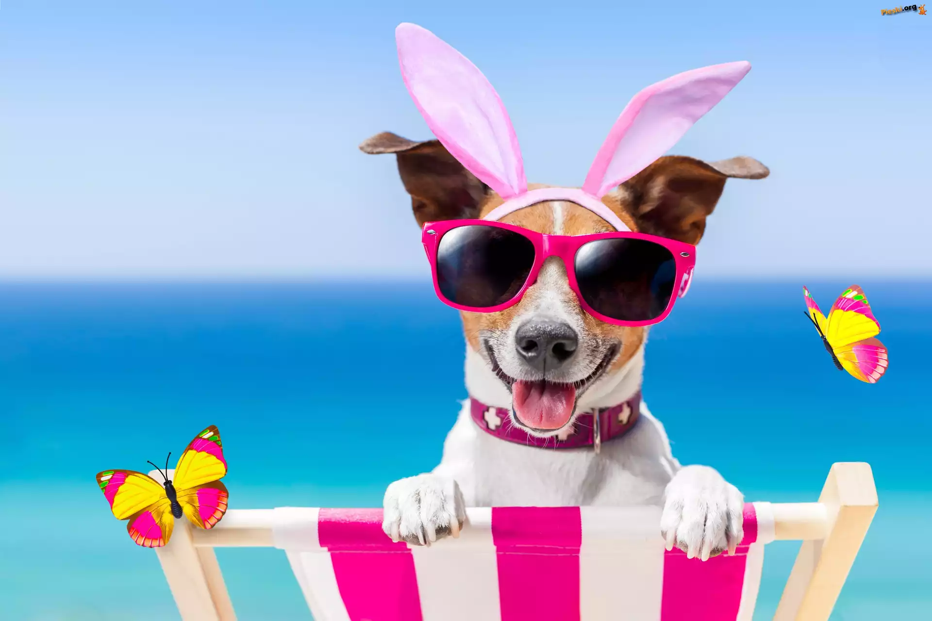Motylki, Śmieszne, Leżak, Jack Russell terrier, Pies, Okulary, Wakacje