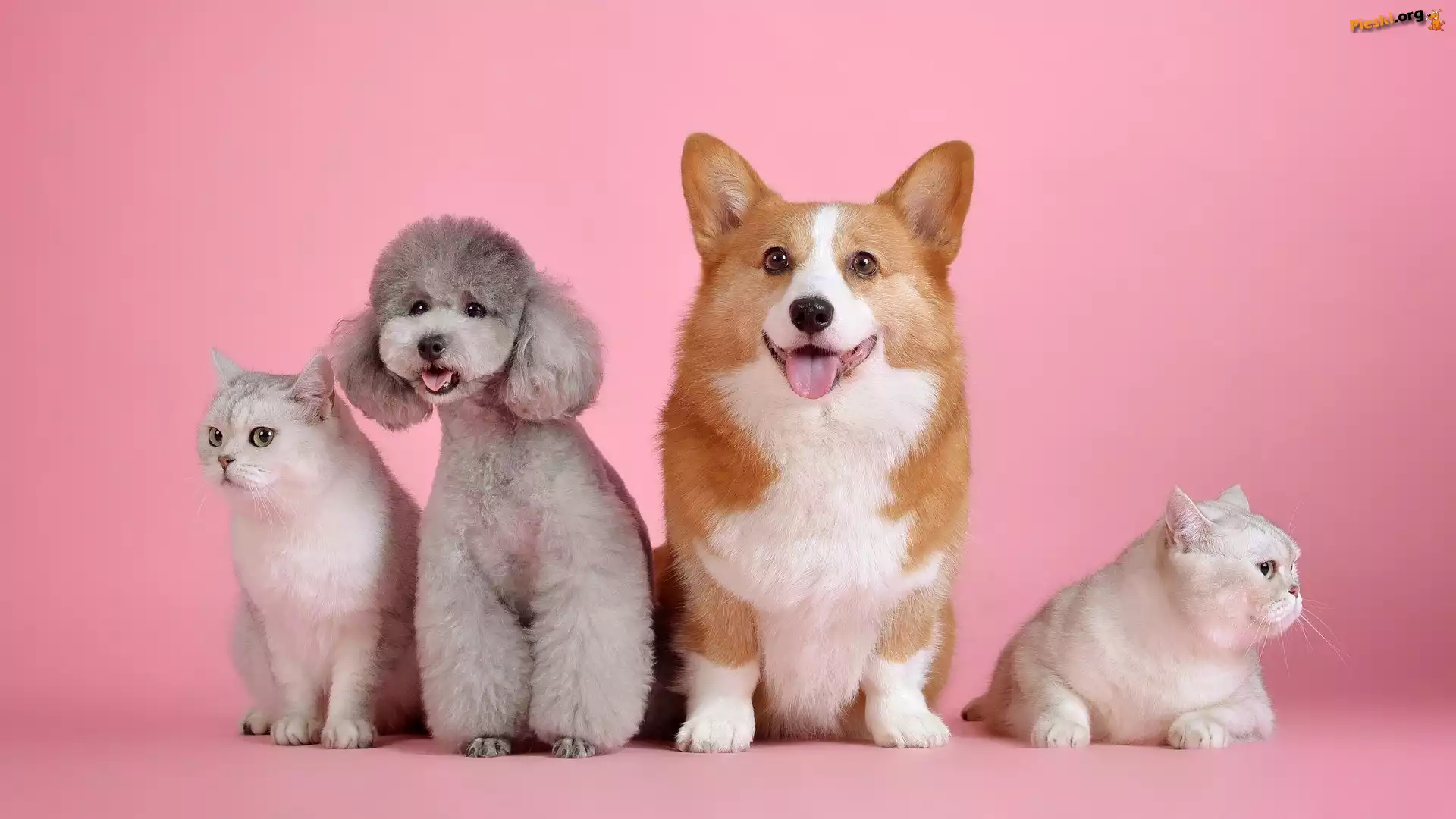 Psy, Pudel, Dwa, Welsh corgi pembroke, Koty, Pieski