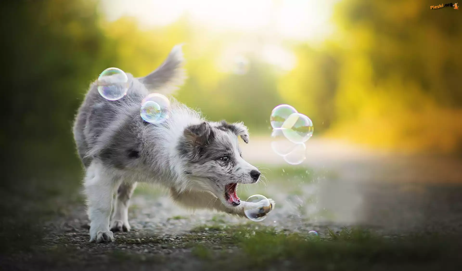 Zabawa, Pies, Border collie, Bańki, Pieski