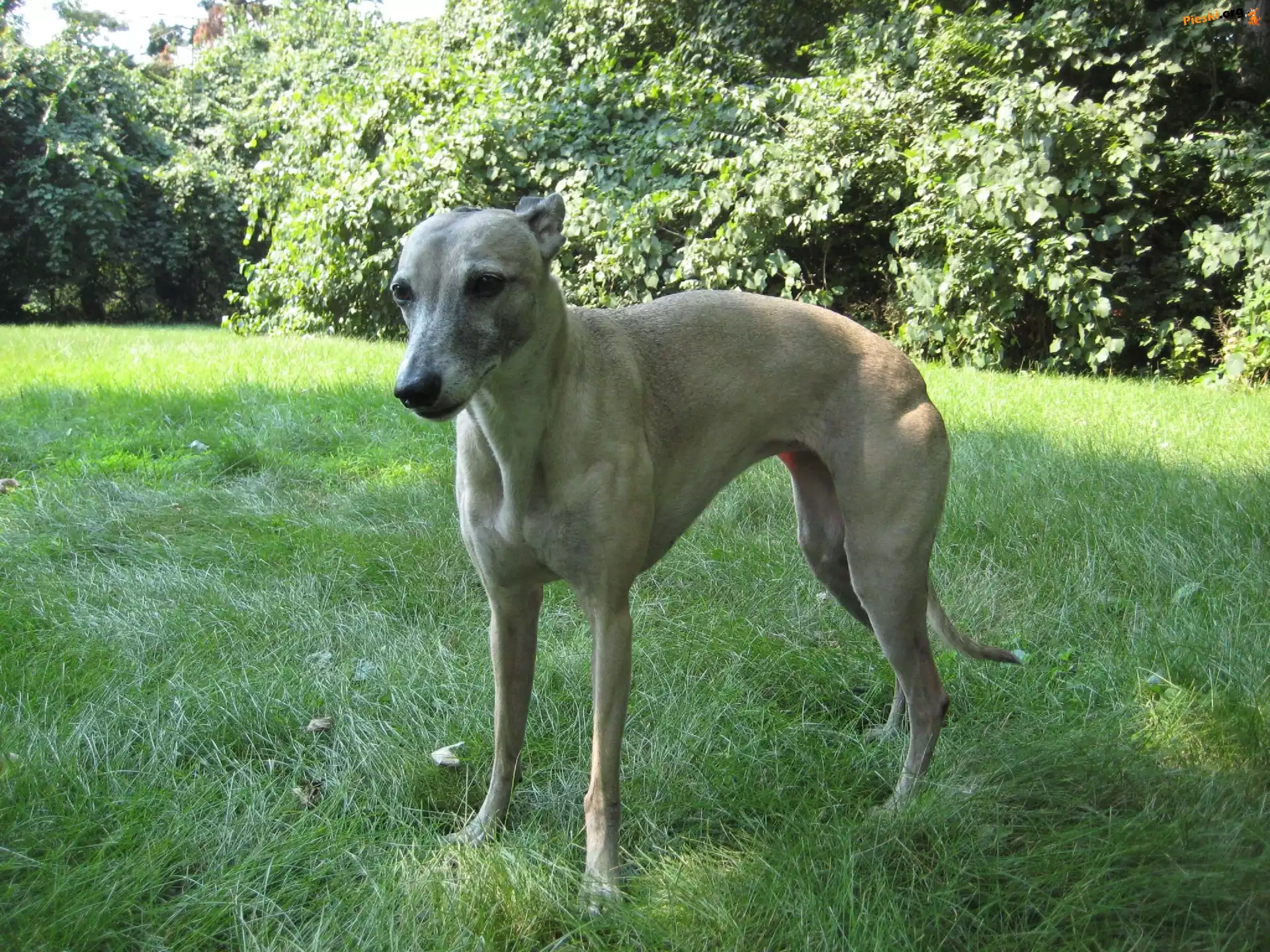 Whippet Whippet, różowe, ubranko Mordka, Pies, Whippet, Liście Pies, Whippet, Mordka