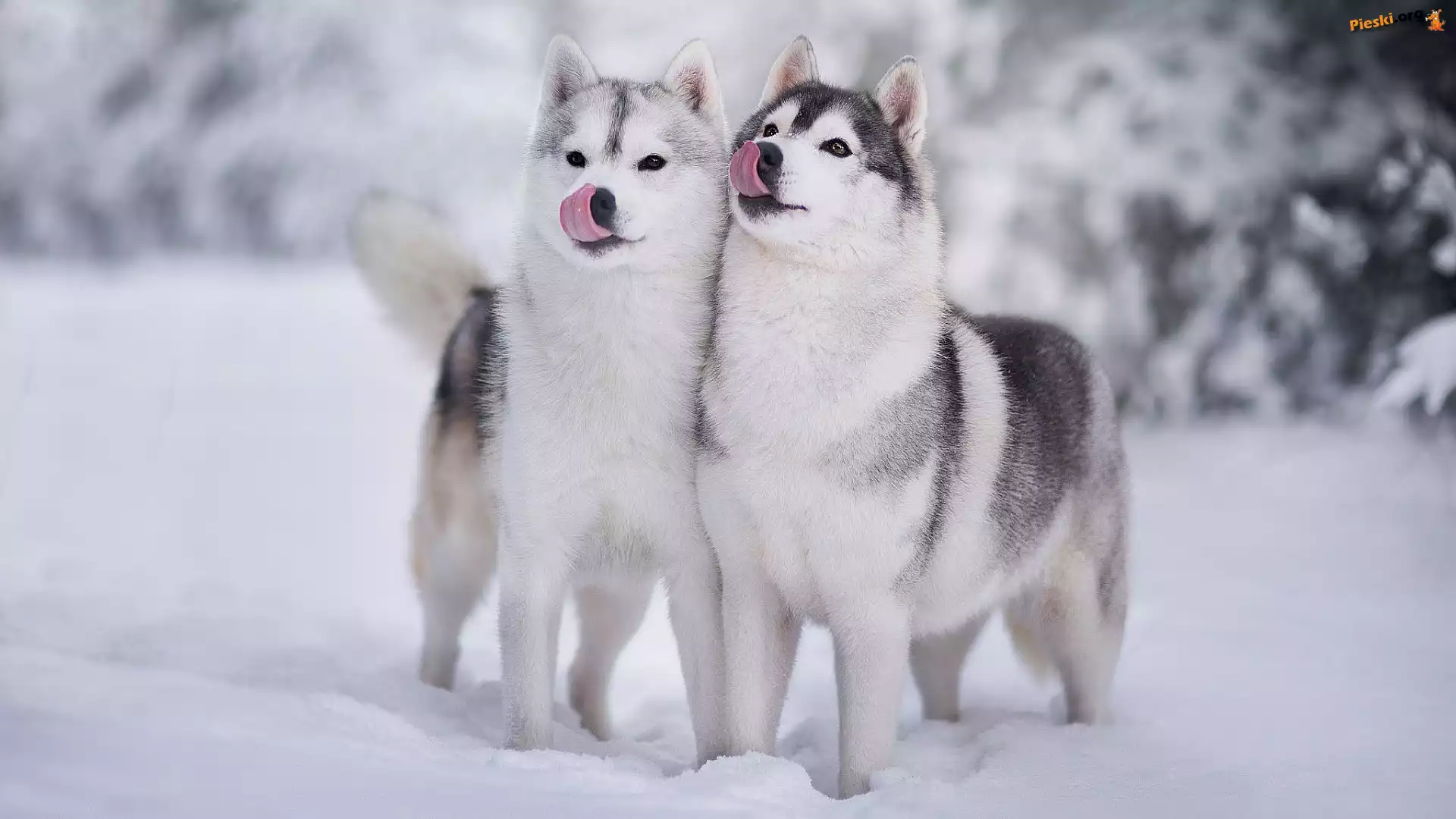 Zima, Psy, Dwa, Siberian husky, Śnieg, Pieski